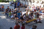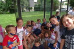 - skupinaNašo grajsko skupino bi najbolje predstavili tako, da bi jo primerjali z ljubkimi zmaji, ki smo jih prvi dan spoznali v risanki Kako izuriti svojega zmaja. Razigrani otroci, ki kar pokajo od energije, bi se cele dneve lovili in tekali po hribu naokrog, a se vseeno na koncu tudi malo pocrkljali, pogovorili in odpočili. Teden je bil poln zanimivih reči, ki smo jih skupaj doživeli. Od obiska muzeja iluzij, pohoda nazaj do našega gradu, iger v igralnici, grajenja hišic iz stolov, velikih iger, skupne adoracije v cerkvi pa do obiska svete maše in pogovora z Bogom. Naše druženje je vsak dan spremljala tudi vreča bombonov s tatuji, ki so jih otroci z velikim veseljem delili in lepili nase ter na animatorje.