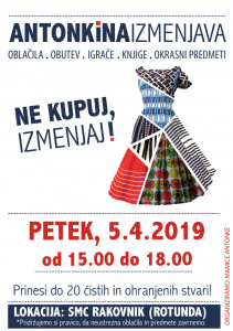 Izmenjava bo potekala v petek, dne 5. aprila 2019, od 15.00 do 18.00 v prostorih SMC-ja (Rotunda).