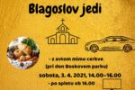 - Blagoslov velikonočnih jedi v živo bo potekal pri don Boskovem parku ob stranskem vhodu v cerkev, kjer bo od 14.00 do 16.00 stal duhovnik, ki bo blagoslavljal velikonočne jedi. Blagoslov bo potekal tako, da se z avtom pripeljete do duhovnika, ki bo od zunaj blagoslovil jedi.