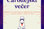 Vabljeni na BREZPLAČEN čarodejski večer, ki bo v soboto, 6. 3. 2021 ob 19.30 uri. Večer bo potekal na zoom povezavi, na kateri bomo lahko aktivno prisostvovali raznolikim trikom večih čarodejev. Z nami bodo domači in gostujoči čarodejski mojstri, Bojan, Roman, Toni in Jan.