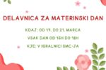 Materinski dan je priložnost, da mamam pokažemo, kako dragocene so. Zato vas vabimo, da se nam pridružite na ustvarjalnih delavnicah, kjer bomo pripravljali majhna, a srčna presenečenja zanje.