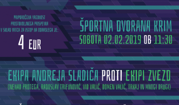 Andrej Sladič v sodelovanju z vrtcem Galjevica v soboto 02.02.2019 ob 11:30 v športni dvorani Krim na Galjevici v Ljubljani organizira dobrodelno prijateljsko košarkarsko tekmo za socialno ogrožene otroke vrtca Galjevica. V okviru tekme bo tudi dražba originalnih podpisanih dresov in nagradne igre.