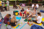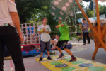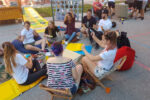 Na igrišču za odbojko smo skupaj postavili nekakšno veliko dnevno sobo, kjer se je odvilo kar nekaj različnih aktivnosti. Morda najbolj poseben je bil velik osem(ali-koliko-že?)koten nogomet. Poleg tega pa smo gostili:
