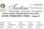 Z velikim ponosom in veseljem vam sporočamo, da je naša učenka, pianistka Ema Lani Fojkar (prof. Simona Đonlić) na 3. mednarodnem glasbenem tekmovanju Tartini, v 2. kategoriji klavir, osvojila 1. nagrado in zasedla 1. mesto v svoji kategoriji.