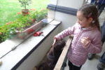 si ogledali Marijino hiško, izvedeli veliko o zgodovini tega romarskega kraja ter si v samostanski knjižnici ogledali originalne izvode Dalmatinove Biblije, Trubarjevega prevoda nove zaveze in še mnogo drugih pomembnih književnih del. Po končanem obisku pri frančiškanih smo se odpravili še k sosedam – v samostan sester klaris. Po skupni molitvi in pesmi v kapeli smo se s sestrami ustavili na pogovoru ob čaju in piškotih. Sestra Katarina nam je skupaj s sestro Pavlo (ki je mimogrede tudi rodna sestra našega kaplana Janeza), predstavila njihov red, ki je zanimiv predvsem zaradi kontemplativnosti. Tako smo izvedeli marsikaj novega o redovnicah, ki jih je v Sloveniji kar 30.