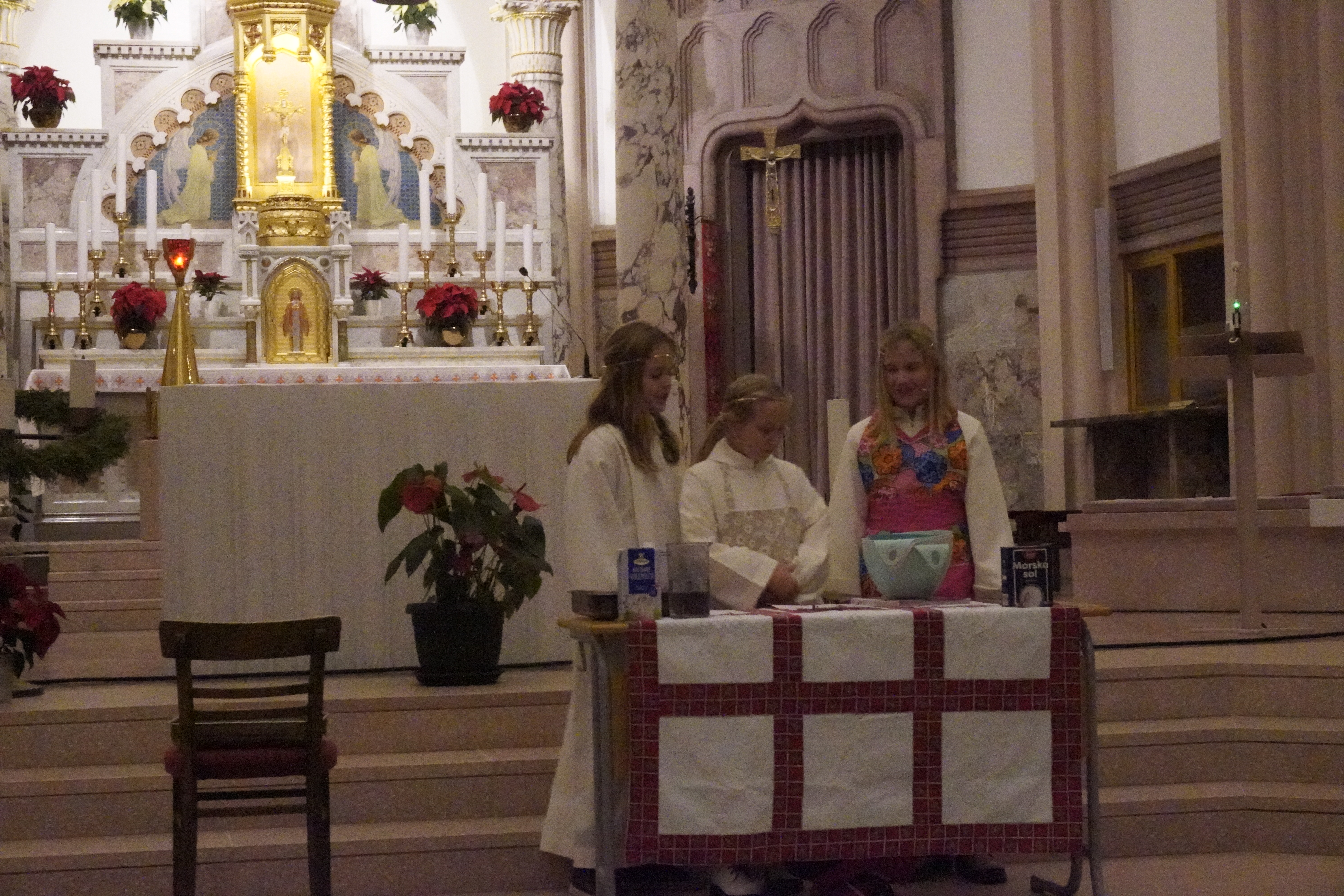 K sreči so drugi izkušeni angeli opazili to namero in so s tem preprečili najhujše, tako da so otroci letos v darilu dobili sveže pečene parkeljne, ki bi jih človek kar jedel in jedel. Še pred obdarovanjem pa je, kot se spodobi, otroke in starše nagovoril sam sveti Miklavž. Letos je otroke vprašal ne samo o tem, če so bili kaj pridni, ampak jih je vprašal tudi o tem, če mislijo, da imajo vsi otroci na svetu to srečo, da jih obišče sv. Miklavž. Hitro so odgovorili, da ne in sv. Miklavž je temu pritrdil, saj nekateri otroci živijo v deželah, kjer divja vojna. Spet druge je prizadela kakšna druga naravna nesreča. Za vse te otroke in starše smo zato še pred obdarovanjem zmolili očenaš in zdravomarijo. Pod vodstvom spretnih povezovalcev prireditve, Julije in Bruna, so se otroci znali hitro razporediti v vrsto, ki se je vila vse do sv. Miklavža, ki je vsakega