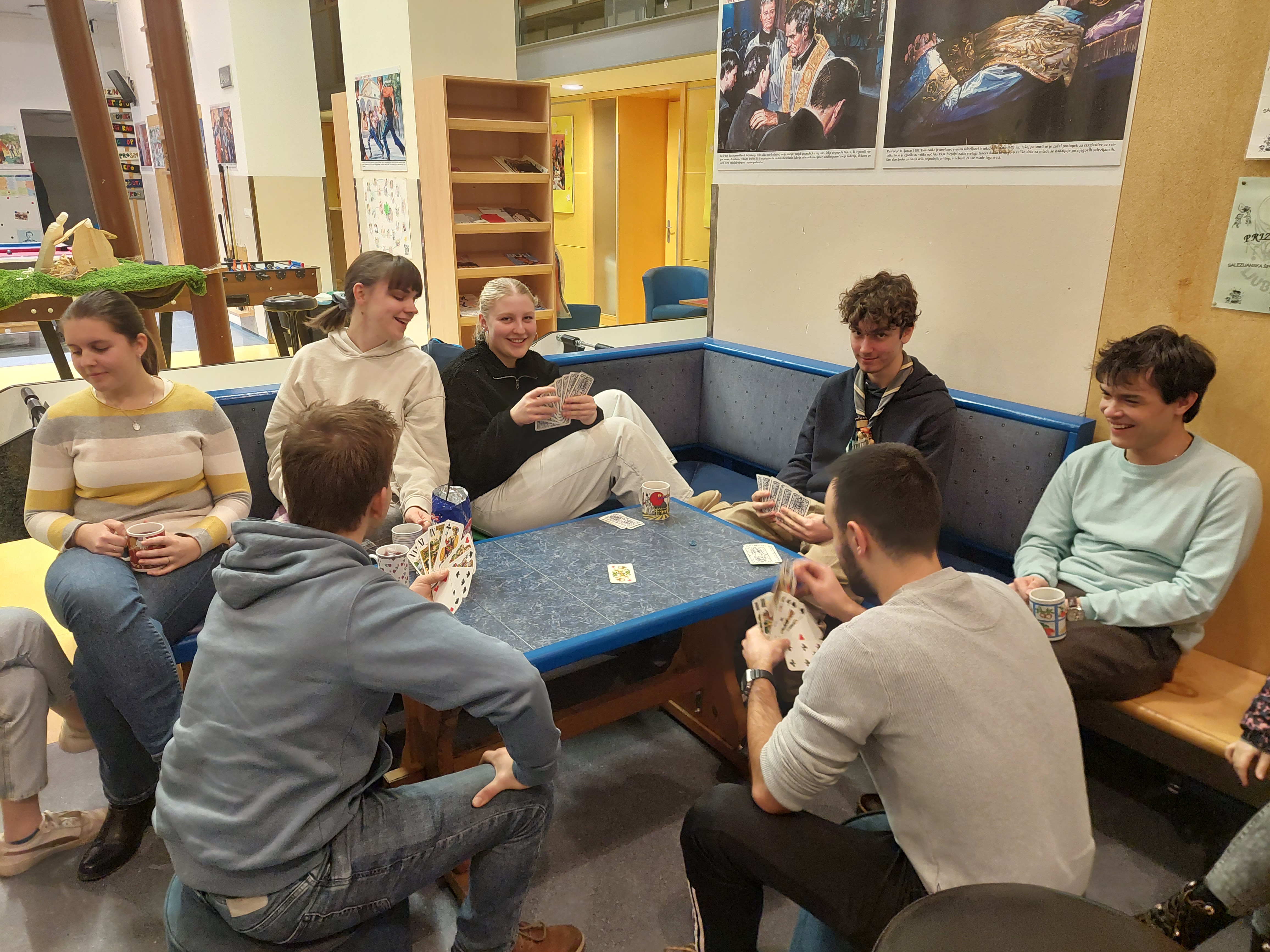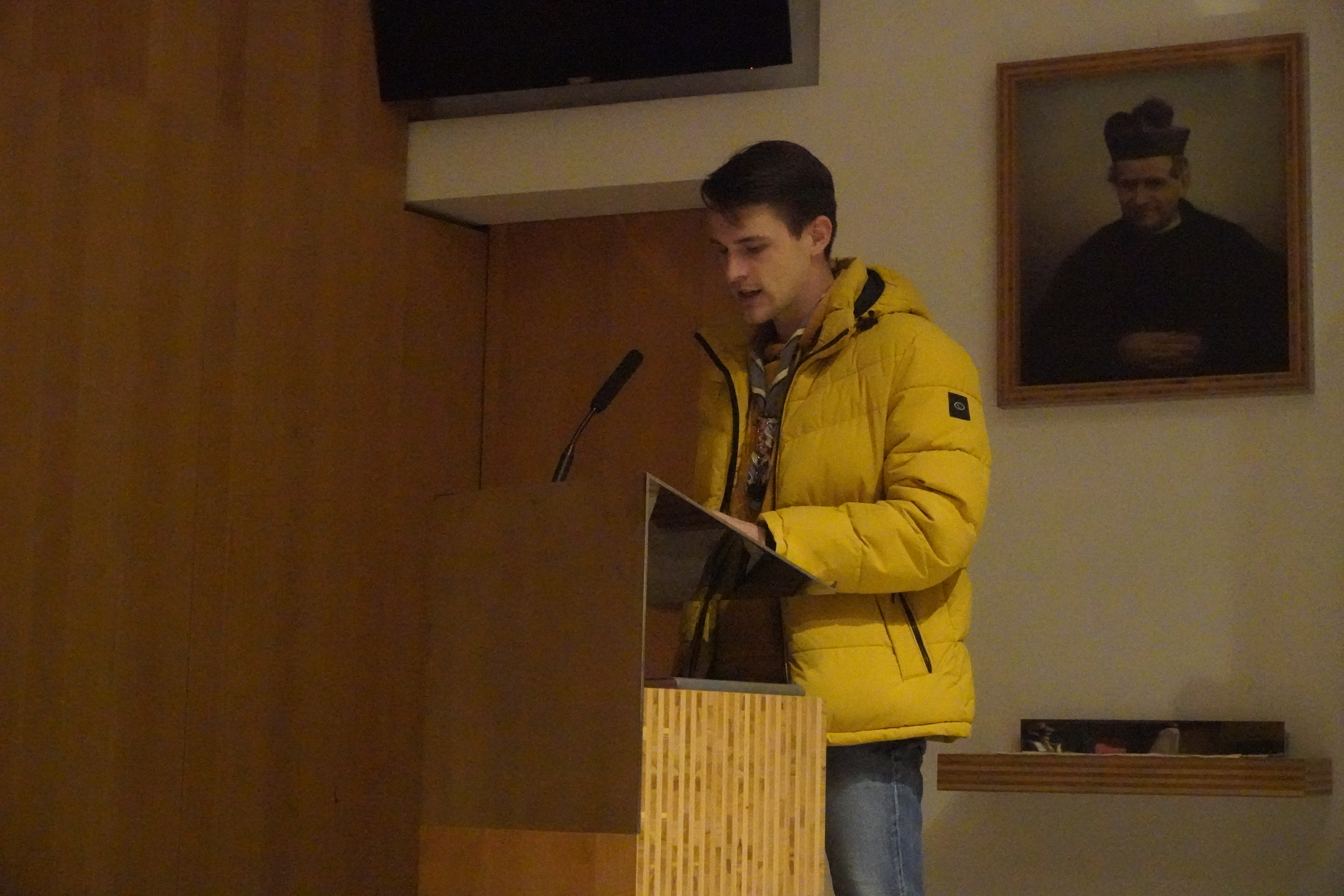 Pri mladinski sveti maši so tokrat sodelovali naši skavt s klana. Poleg lepega petja so sv. mašo popestrili s tem, ko so nas naučili skavtskega rokovanja pri pozdravu miru. Kaplan Janez nas je ob slišani Božji besedi spomnil, da Bog tudi danes želi vstopiti v našo realnost, kakršna koli je. Med nas pa Bog in njegove milosti prihajajo po verujočih kot v priliki o ozdravitvi hromega, ko je po veri nosačev Jezus hromemu odpustil grehe in ga ozdravil njim v pričevanje. Mlade je povabil, naj bomo tudi mi verujoči nosači in Bogu prinašajmo svoje ohromelosti in strahove ter stiske in trpljenje naših bližnjih, saj je vera in molitev način, ki gane tudi Boga. Pri sv. maši smo molili tudi za uspešno izpitno obdobje vseh študentov. Mentorici Anja in Maša sta se ob koncu zahvalili skavtom in kaplanu in nas vse povabili na druženje v SMC Rakovnik.