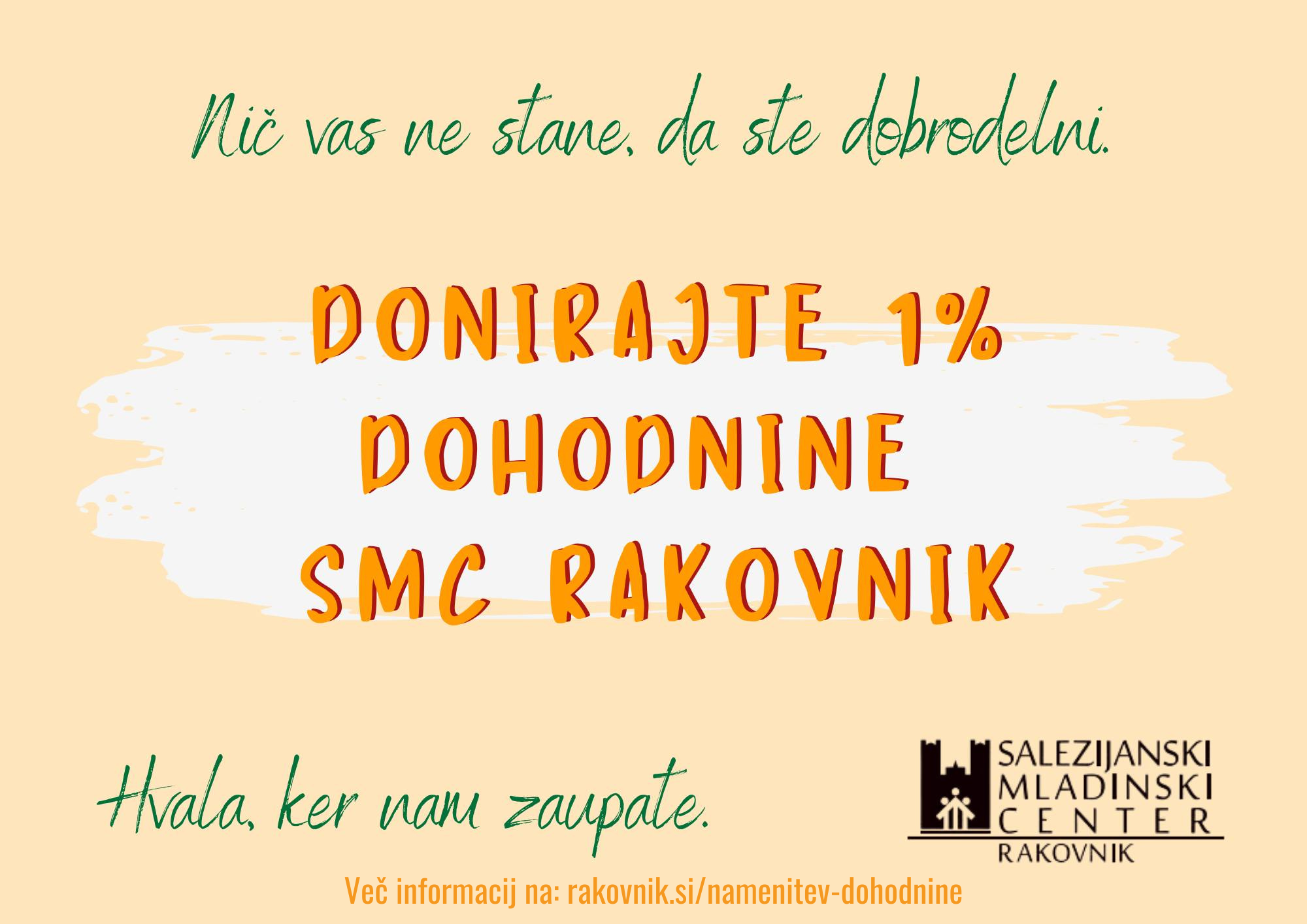 Zahvaljujemo se vsem, ki ste se že ali se boste odločili, da del dohodnine namenite Salezijanskemu Mladinskemu Centru Rakovnik. Vaša podpora bo pripomogla k našemu delovanju in pomoči mladim! 🙏