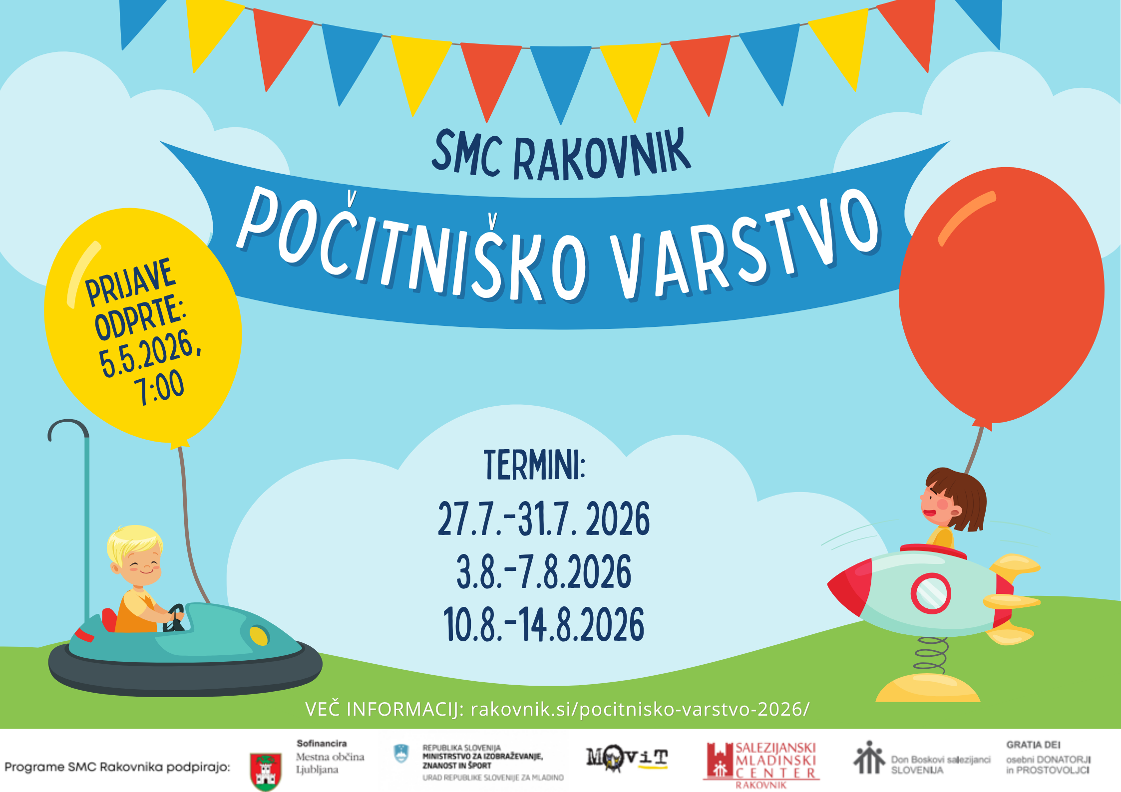 Avgusta 2026 bomo ponovno organizirali počitniško varstvo, ki bo potekalo v treh terminih: