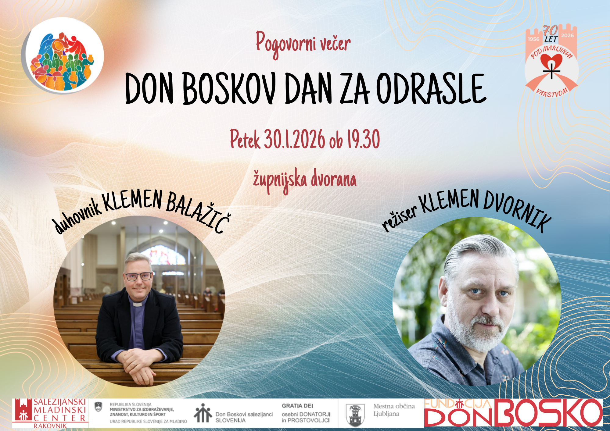 Gosta letošnjega pogovornega večera v okviru don Boskovega dne za odrasle bosta medijske osebnosti; režiser Klemen Dvornik in salezijanec Klemen Balažič.