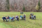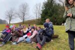 V soboto 13. 11. smo se zbrali na glavni železniški postaji v Ljubljani. Na izlet je prišla približno polovica vseh otrok v četi. Vsi smo bili z levo nogo še v postelji, saj je bila ura komaj 6:45. Naša začetna točka je bila avtobusna postaja v Polhovem Gradcu. Do tja smo približno pol ure zaspano presedeli v avtobusu, saj smo vedeli, da nas čaka naporna hoja. Na začetku so nas voditelji seznanili s tem, da nas lovijo grozni zmaji in so nam že za petami. Nekaj časa smo že hodili, ko so nam voditelji veleli, naj si v parih zavežemo gležnje in tako hodimo naprej. Bilo je težko. To vam že lahko povem! Z nekaj okornimi padci smo, ne hudo poškodovani, prispeli do travnika, ki so ga voditelji določili za igro. Tam smo se navdušeni nad odvezanimi nogami in počitkom začeli igrati Roverčka. Kmalu zatem, ko smo se odpravili naprej, smo si morali zavezati oči in po vodih tekmovati, kateri prvi prispe do Žana. Ko smo spet lahko gledali, nas je čakala še dvourna hoja ter vzpon, med katerim smo se igrali še nepoimenovano igro, ko smo skakali preko namišljene reke. Pol ure je trajalo, da smo se po vzponu ustavil in pomalicali. Na tistem travniku smo še nekaj časa peli, voditelji pa so vode enega za drugim odpeljali.