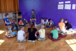 V ponedeljek zjutraj, ko smo vstopili v učilnico se še nismo prav dobro poznali, a se je to kaj kmalu spremenilo, saj smo do kosila že vsi poznali imena drug drugega. Prvi dan je torej potekal precej tradicionalno: spoznavanje, himna, ogled prvega dela risanke o Krudovih, kateheza, kosilo (ki ga je hitro zmanjkalo), popoldne pa še velika igra na nogometnem igrišču in pa igra ‘Korenčki’, pri kateri smo se tako razživeli, da so naši sosedje (skupini 6 in 8) zagotovo vedeli v kateri učilnici smo (če pred tem niso J). Po uspešnem in veselem prvem dnevu smo že komaj čakali naslednjega, ki smo ga preživeli podobno kot prvega, le da smo si med delavnico izdelovanja okvirjev vzeli čas za adoracijo in sv. spoved v cerkvi.