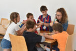 4. skupino smo sestavljali udeleženci stari od 6 do 9 let in štirje animatorji. Prvi dan smo se sicer bolj lovili z imeni kot z delavnico, a po skupaj preživetem dopoldnevu smo bili že vsi navajeni nove družbe. Po kosilu smo dobili sladoled in to pridno izkoristili za kamuflažo naših obrazov in imitiranje ptičev ter samorogov. Popoldne smo šli na igrišče kjer smo zaplesali nekaj bansov. V torek smo se odpravili v živalski vrt. Najbolj so nas navdušile opice, morska leva, pravi lev in surikate (ki so bile nas vesele še bolj, kot smo bili mi njih). V sredo smo po sveti maši, pri kateri smo res naglas peli, imeli štafeto na nogometnem igrišču, popoldne pa smo šli nekateri tudi k spovedi. Čez teden smo imeli veliko različnih delavnic: poskuse, ki jih lahko izvedeš doma, izdelava tiramisuja in piškotnih kroglic, ki smo jih tudi pojedli, in ustvarjanje iz slanega testa. Vsak dan smo poleg ogleda risanke in sodelovanja pri katehezi preigrali ogromno enke, osla, morilca, nogometa in gnilega jajca, šli pa smo tudi na igrala in v katakombe, kjer smo trenirali ročni nogomet.