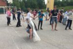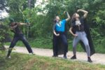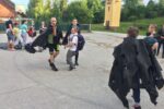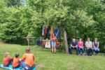 Na prvi junijski dan smo se zbrali na Kureščku. Tam nas je pričakal davkar kralja Viljema. Naznanil je, da je kralj zelo vesel vsakega obiskovalca v svojem kraljestvu in nas želi v znak dobrodošlice povabiti na svečano gostijo na gradu. Preko davkarja pa nam je poslal tudi dve vreči sladkih dobrot. Tej ponudbi se nismo mogli upreti, zato smo se za davkarjem odpravili proti gradu. A že kmalu nas je na poti čakalo presenečenje: davkar je zahteval, da plačamo cestnino. Ni nam preostalo drugega, kot da smo mu dali eno vrečo sladkarij. Na podoben način smo se morali posloviti tudi od druge vreče, za povrh pa smo kralju morali darovati tudi nekaj naših svežih in čistih majic. Tik pred gradom smo srečali tudi nekaj domačinov, ki so počivali v senci. Posvarili so nas, da naj ne hodimo na grad, saj zdaj v odsotnosti kralja Richarda vlada njegov zloben in pohlepen brat. A zviti davkar nas je vseeno uspel zvabiti na grajsko dvorišče. Tam nas je sprejel kralj Viljem. Kmalu smo spoznali, da je bila obljubljena gostija le zvijača. Kralj nas je prisilil, da smo počeli nesmiselne stvari (kot je prestavljanje naših nahrbtnikov iz ene strani dvorišča na drugo), na koncu pa nam je vsem hotel obriti lase na enak način kot se je obril tudi sam. Pred najhujšim so nas rešili Robin Hood in njegova druščina. Z njihovo pomočjo smo pobegnili iz gradu, kasneje pa še iz kraljeve zakladnice uspeli dobiti nazaj naše nahrbtnike, ki jih je stražila kraljeva straža. Kuharica nas je okrepčala z odličnimi hot dogi. Po večerji pa se je v kraljestvo vrnil dobri in pravični kralj Richard. V nagovoru nam je povedal 7 glavnih grehov njegovega zlobnega brata. Nato smo v napeti igri, ki je potekala v temi, osvojili grad in nato zadovoljno zaspali v udobnih grajskih posteljah. Naslednji dan so nas že navsezgodaj zbudili sončni žarki. Dan smo začeli s telovadbo, sledil je zajtrk. Po zajtrku smo imeli prvi letošnji jutranji zbor celega stega. Naučili smo se, kako se je treba v slovesnem kvadratu obnašati, ponovili potek obljub in se pripravili na sveto mašo, ki jo je daroval naš duhovni asistent Jure. Med mašo smo v barve našega stega oblekli 8 novih volčičev ter 8 izvidnikov in vodnic. Krdelu ostrozobih nočnih lovcev se je pridružila nova volkuljica, v naše vrste pa smo še uradno sprejeli duhovno spremljevalko volčičev – Balu, ki od sedaj ponosno nosi našo temnomodro-belo rutico.