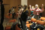 Julija Gornik in Maša Kastelec, so se nam poleg naših animatorjev pridružili tudi prijatelji iz drugih župnij. Vsi smo uživali, medtem ko smo slavili, častili in prepevali. Kot po navadi je bilo vsega skupaj prehitro konec, a smo si večer še polepšali z druženjem v SMC-ju, kjer smo se ob sladkanju s kakavom in penicami zabavali in marsikaj pomenili.
