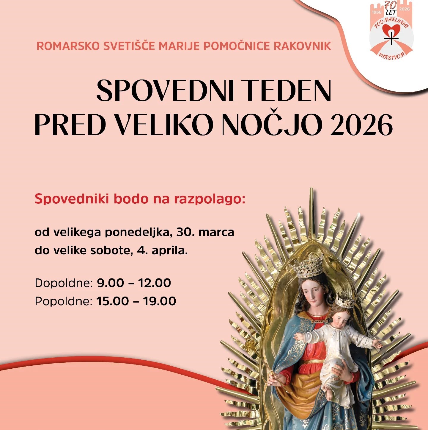 SVETA SPOVED poteka v naši cerkvi v tem tednu velikega tedna vsak dan od 9.00 do 12.00 in od 15.00 do 19.00 ure ter med jutranjo sv. mašo ob 7.30. Vabljeni spoved Povejte prijateljem FacebookTwitterGoogle+WhatsAppViberEmailPrint