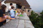 Dneve smo začenjali z zajtrkom, ki nas je dobro okrepil za aktivnosti, ki so se zvrstile skozi dan. Sledila je risanka (1. teden Marcelino: kruh in vino; 2. teden V 80-ih dneh okrog sveta; 3. teden je bil obarvan povsem športno in zato brez risanke :)), zatem pa ustvarjalna delavnica oz. učenje in trening posameznega športa. Dvakrat na teden smo otroke presenetili z obiskom Ljubljanskega gradu, Mestnega muzeja Ljubljana, Slovenskega šolskega muzeja, veslanjem ali obiskom bazena.
