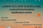 V nedeljo, 16. novembra 2025, po 10. 30 sveti maši bo v rotundi SMC-Rakovnik nedeljska kava s pogovornim omizjem z gosti, na temo Spoštovanja trpljenja in življenja. Gostje pogovornega omizja: sestra Emanuela Žerdin, salezijanec Peter Pučnik in izr. prof. dr. Urh Grošelj, dr. med.