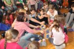 V petek smo se v večernih urah zbrali v Veržeju. Po večerji in namestitvi v sobah smo skupaj začeli program našega vikenda. Otroci so spoznali zgodbo o Noetu in njegovi ženi, po molitvi so odšli gledat risanko o bikcu Ferdinandu, starši pa so nadaljevali svoj program. Tudi v soboto smo dan po zajtrku začeli s skupno molitvijo, v kateri so otroci spoznali, da smo kot Cerkev ena velika družina. Nato so otroci odšli pogledat še drugo polovico risanke, starši pa so začeli s svojim programom, kjer so imeli posebnega gosta. Po risanki so se otroci razdelili v skupine za kateheze, kjer so poglabljali svoj odnos do živali. Sledila je ustvarjalna urica. Po kosilu so starši in otroci preživeli nekaj skupnega časa; nekateri so odšli na sprehod, drugi so igrali nogomet, vsak je našel nekaj zase. Kasneje, ko so starši nadaljevali s svojim programom, so se otroci odpravili na kmetijo, kjer so videli krave, pujse in kokoši ter poskusili domača bučna semena. Ko smo se vrnili, je bila na vrsti velika igra, pri kateri so otroci sestavljali svoje kmetije z najrazličnejšimi živalmi in mehanizacijo. Igri je sledil še en del katehez s pogovorom o požrtvovalnosti. Po večerji je sledil družabni večer, v okviru katerega smo bili priča poroki Noeta in njegove žene. Utrujeni od vtisov celotnega dne smo se v poznih večernih urah odpravili spat. Tudi nedeljsko jutro smo začeli z zajtrkom in molitvijo, nato pa smo nadaljevali s pripravo na sveto mašo, ki jo je vodil naš kaplan Janez. Sledila je minutka za fotografiranje in še zadnje kosilo, preden smo se odpravili nazaj proti Rakovniku.