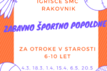 Namenjeno otrokom v starosti 6-10 let, potekalo bo vsak drugi petek na igrišču SMC-ja, med 16.00 in 18.00. Otroci se bodo po dolgem tednu šole lahko sprostili ob različnih športnih igrah, krepili svoje telo in duha ter med seboj sklepali nova prijateljstva. Za informacije pokličite na 030 352 040 ali nam pišite na [email protected]